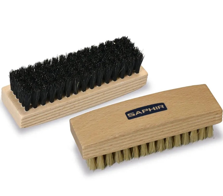 Saphir Brush 12.5cm - Bàn chải lông heo rừng Saphir dùng để đánh bay bụi bẩn trước khi chăm sóc giày, hoặc dùng để đánh bóng sau khi sử dụng Saphir creme hoặc sáp. Sợi bằng lông heo rừng giúp đánh bóng nhanh. Cán làm bằng gỗ sồi hoàn thiện đẹp.
