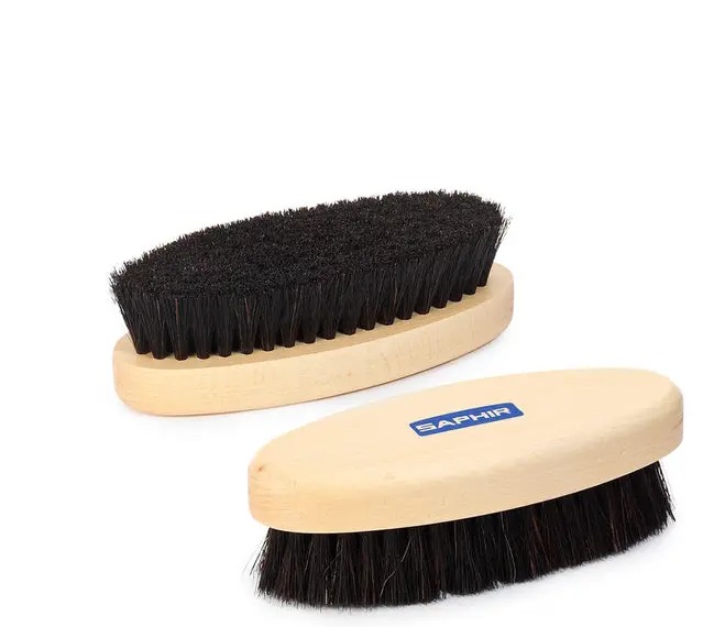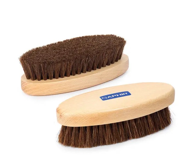 Saphir Oval Brush - Bàn chải lông ngựa oval Saphir dùng để đánh bay bụi bẩn trước khi chăm sóc giày, hoặc dùng để đánh bóng sau khi sử dụng Saphir creme. Sợi bằng lông ngựa rất mềm và mượt không để lại vết xước trên bề mặt da, hạn chế tối đa bết kem ở sợi. Cán làm bằng gỗ sồi hoàn thiện đẹp.