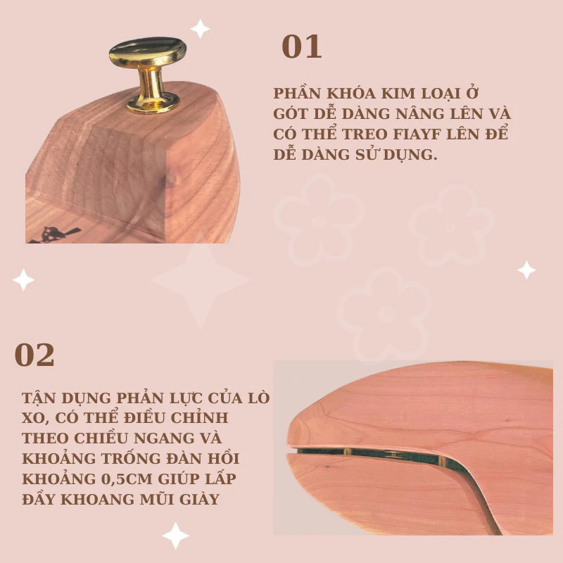 Để vừa vặn hoàn hảo với giày, chúng tôi khuyên bạn nên chọn kích thước nhỏ hơn kích thước giày một chút (chọn size shoetree nhỏ hơn 1 size so với giày).