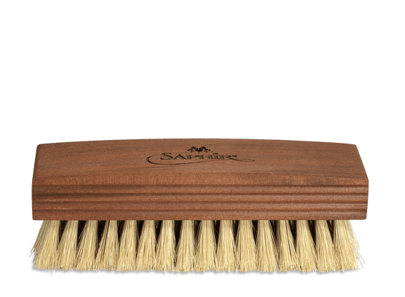 3. Khi sáp đã khô, hãy sử dụng bàn chải đánh bóng Saphir Médaille d'Or để loại bỏ sáp thừa và đạt được độ bóng mềm mại.