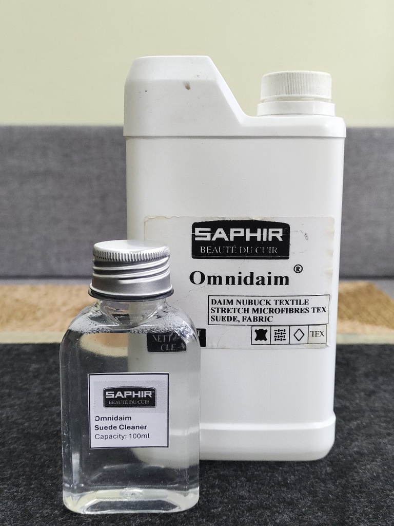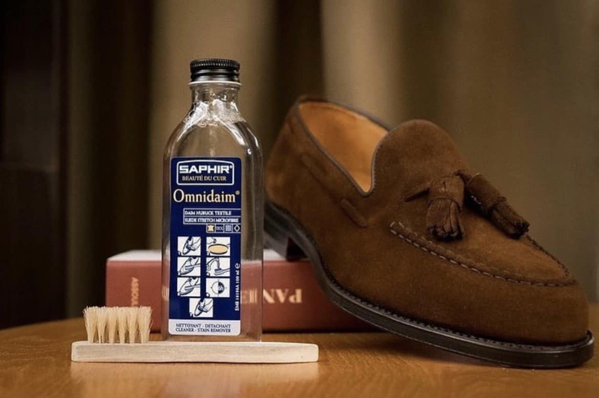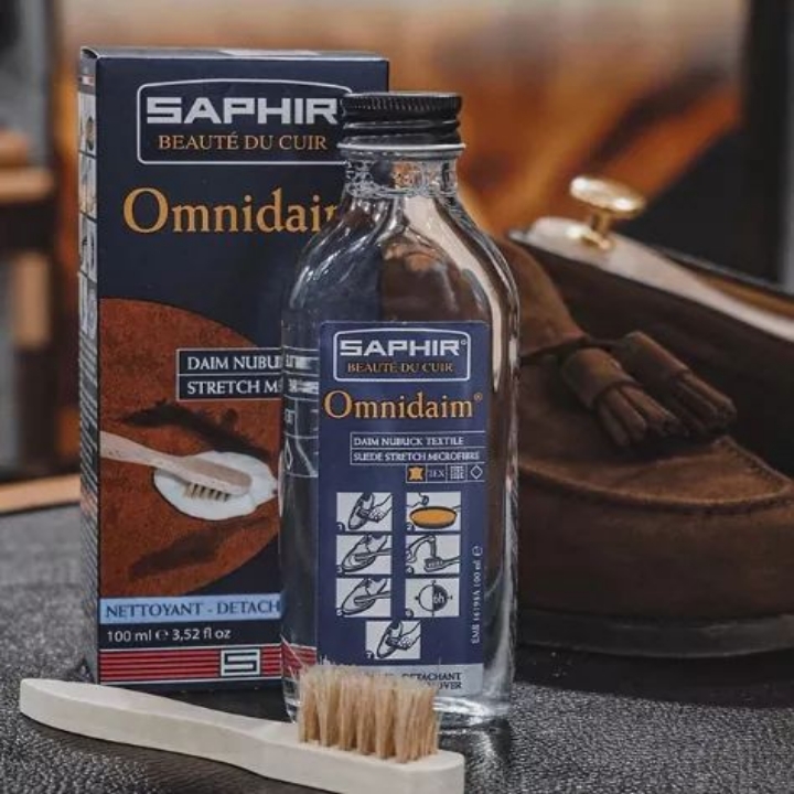 - Dưỡng lại bề mặt da lộn bằng Saphir Renovetine và bàn chải da lộn Saphir Crepe Brush