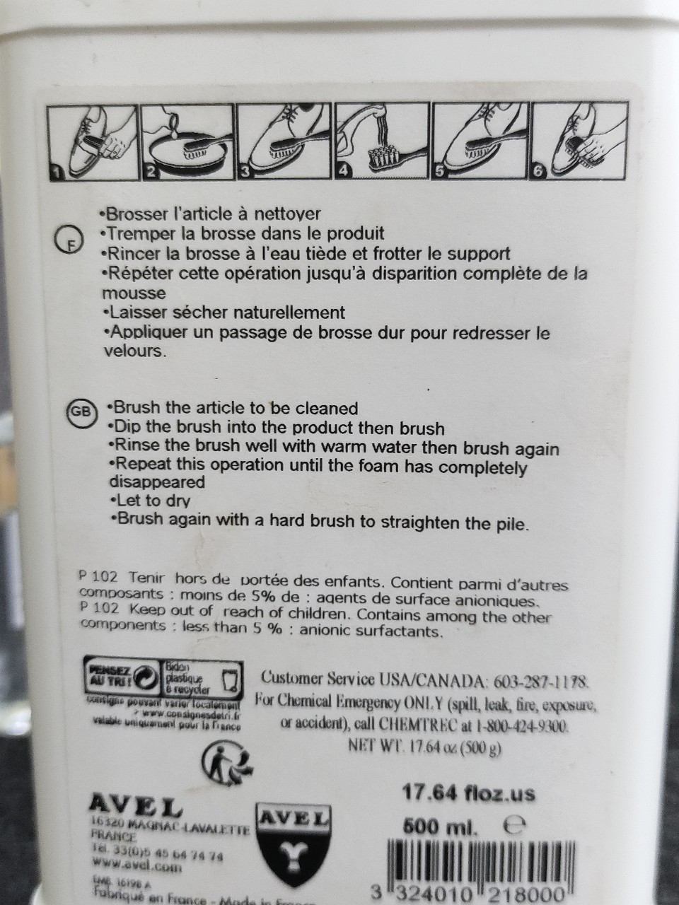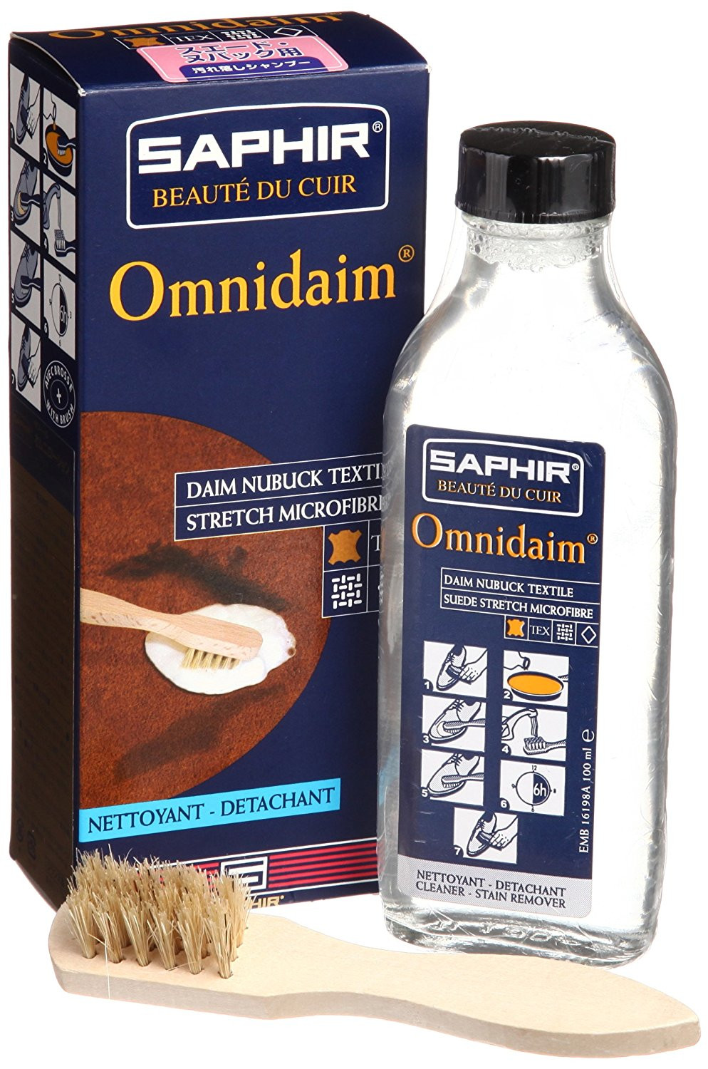 Sản phẩm dùng để làm sạch bụi bẩn, vết ố mốc trên giày da lộn, giày da nubuck hay giày vải sợi dệt. Sản phẩm không làm bạc màu của giày và không gây hại da tay.