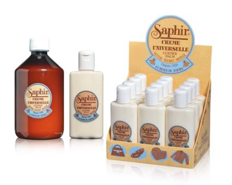 Sữa làm sạch và dưỡng da Creme Universelle tối ưu cho tất cả các loại da trơn, da bò sát, .. của các sản phẩm giày da, túi xách, nội thất bằng da thật. Sản phâm được sản xuất với công thức dựa trên sáp ong với tỷ lệ 28.9% và được làm giàu thêm với dầu Jojoba giàu vitamin E và chất chống oxy hóa giúp nuôi dưỡng da.